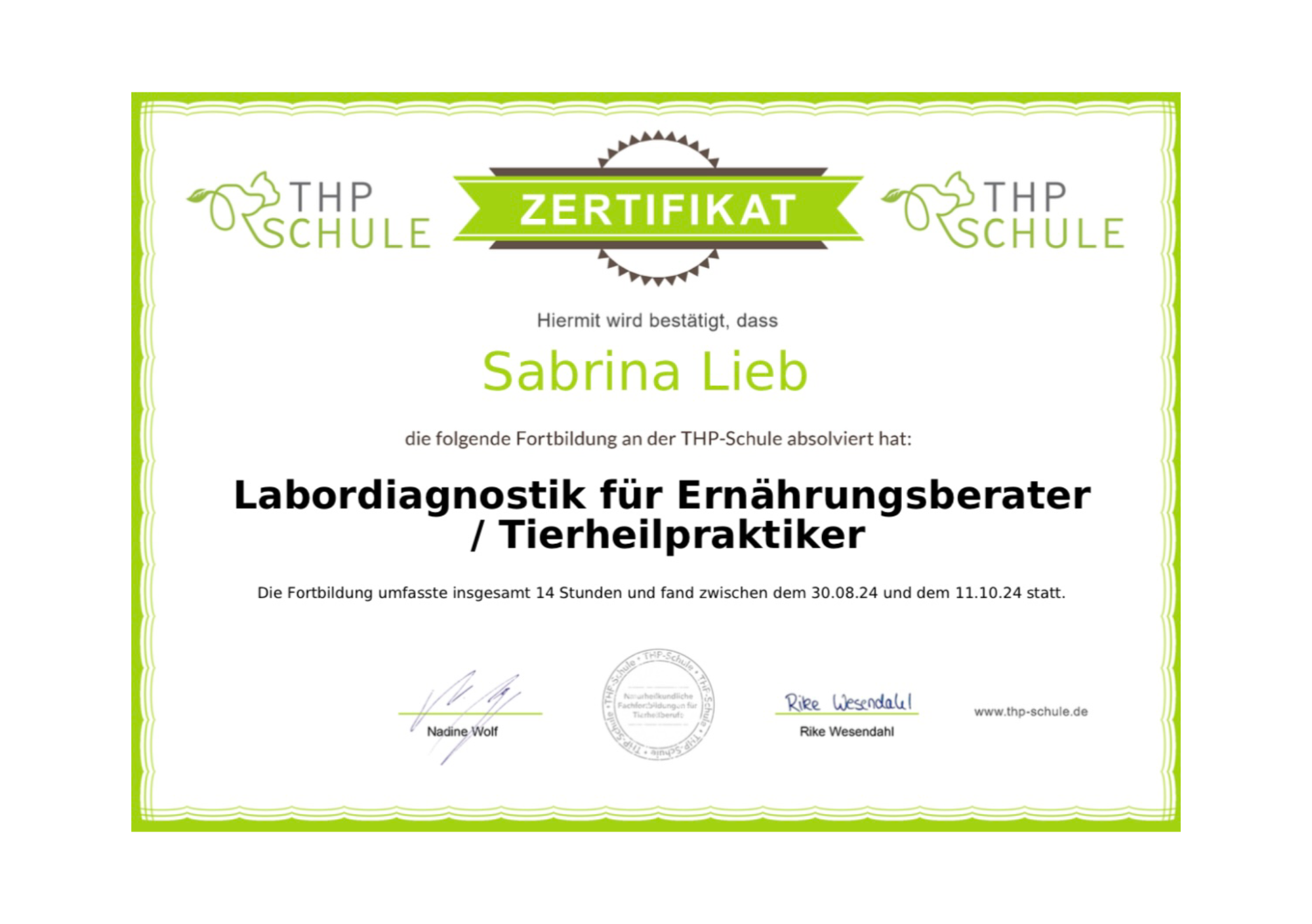 Labordiagnostik 2024 - THP Schule, Rike Wesendahl