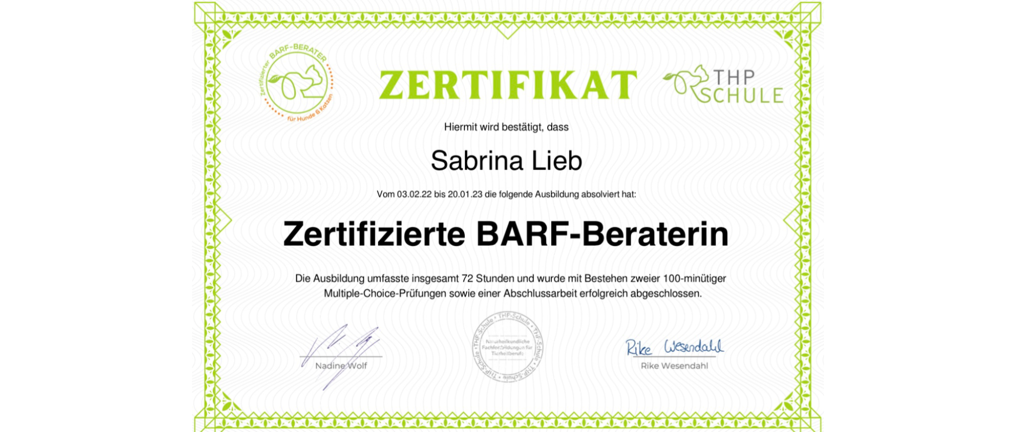 Barf-Berater Ausbildung 2022 - THP Schule, Nadine Wolf & Rike Wesendahl