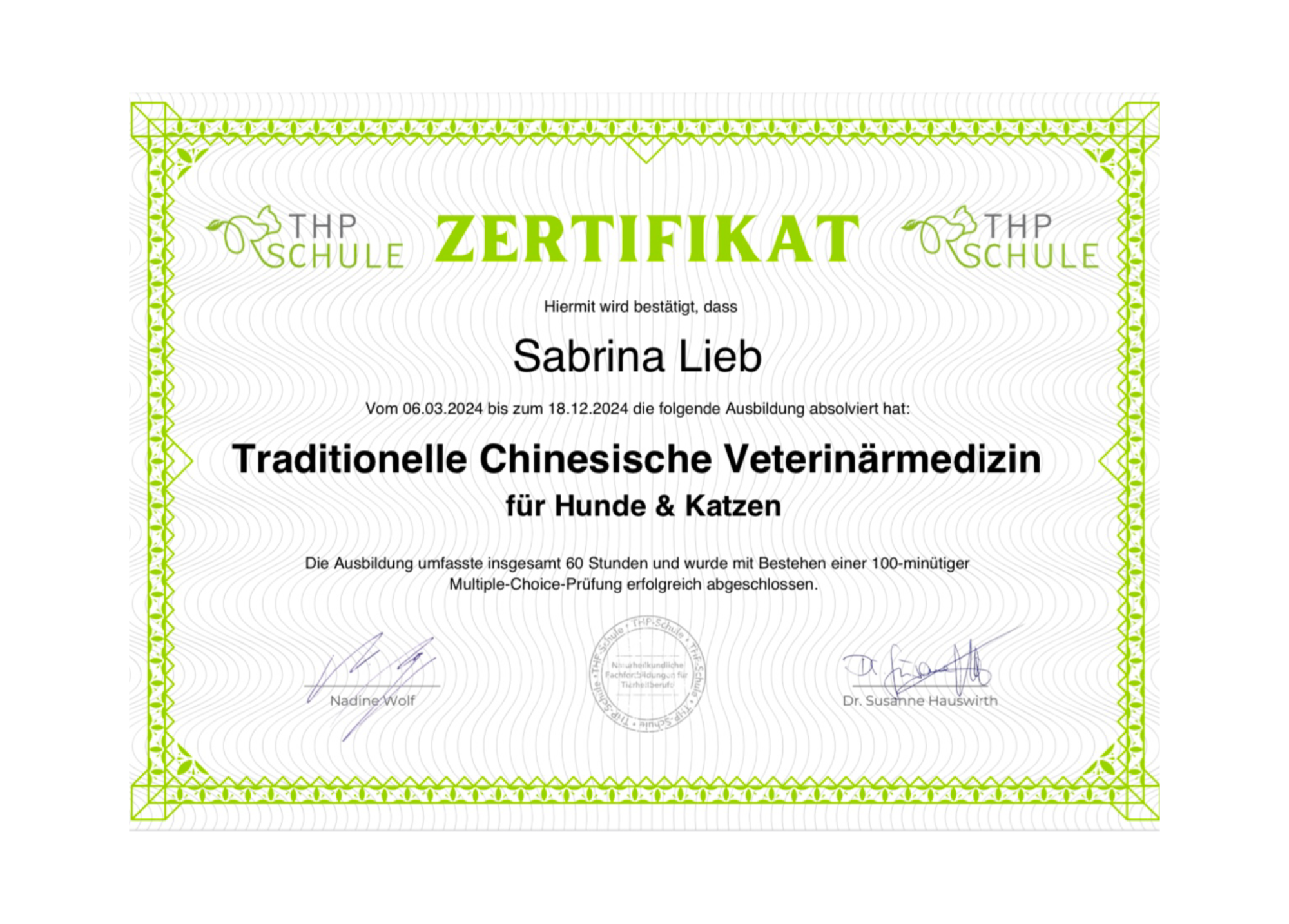 TCVM Ausbildung 2024 - THP Schule, Susanne Hauswirth